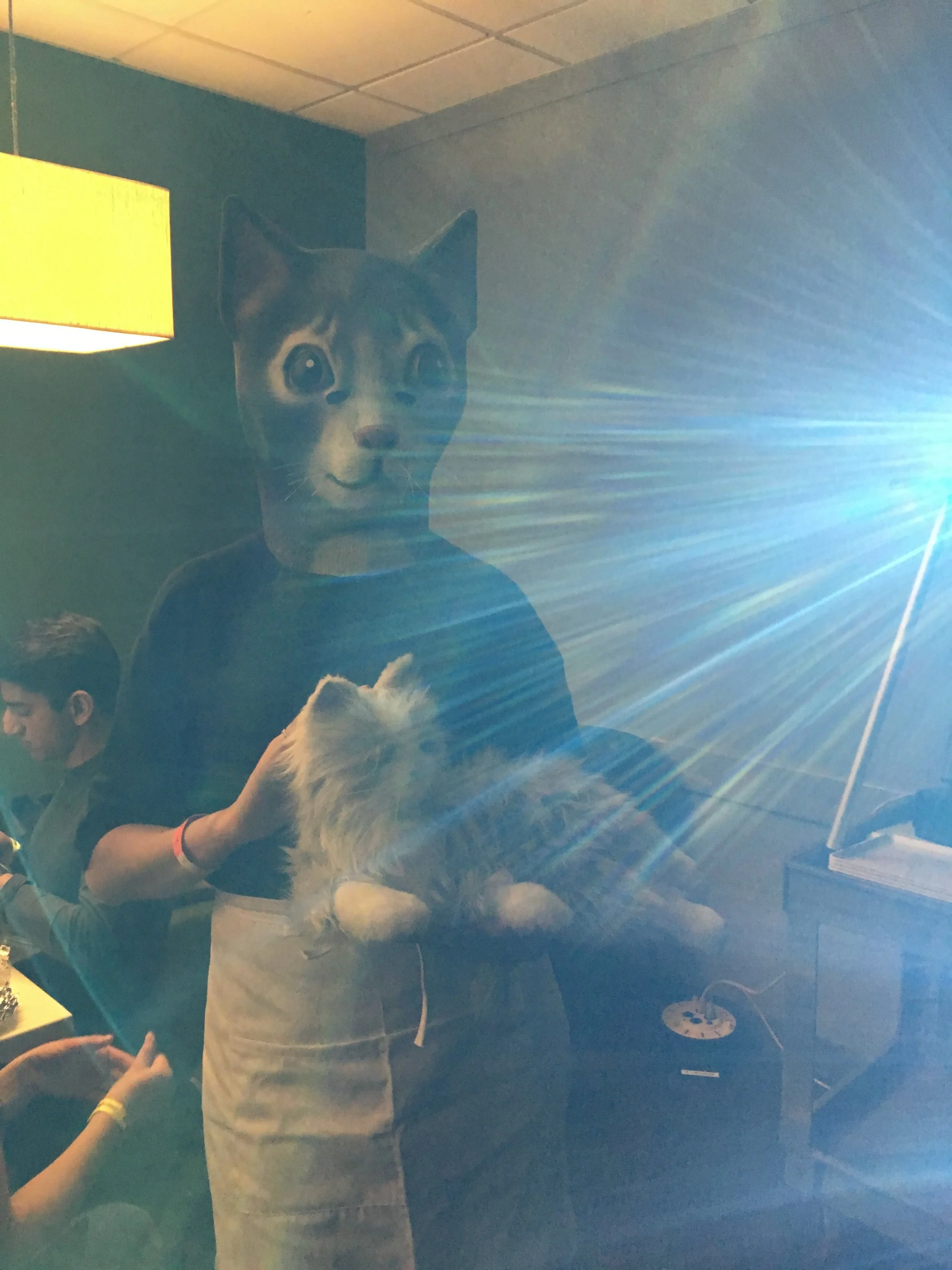 An exhibit for the Boston Museum of Fine Arts, an exploration of the uncanny. A cat café populated by robotic cats and waitresses from the future. A menu full of options like switches, pacer motors and programmable voice boxes. Make your own monster. See here.